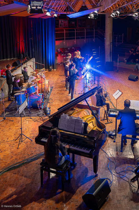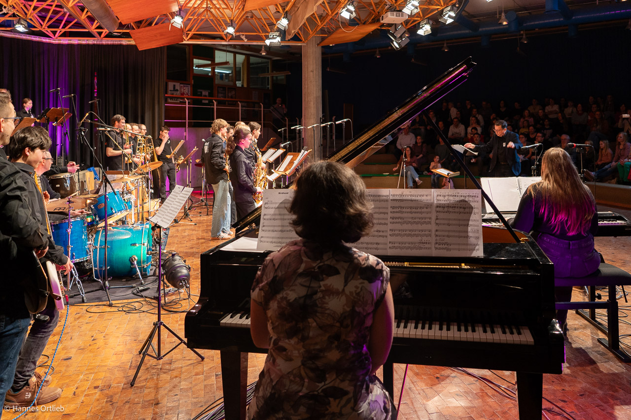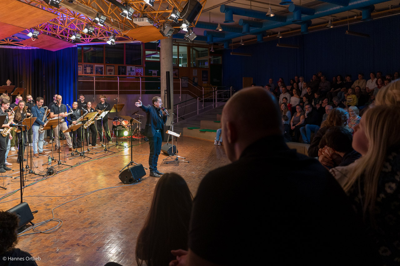 Den Auftakt machten die 13 Musikerinnen und Musiker der Unterstufen-Jazzband unter der Leitung von Joachim Kocsis. Mit vier abwechslungsreichen Stücken zeigten sie eindrucksvoll, wie viel musikalisches Talent bereits in den jüngsten Jahrgängen steckt. Ein besonderes Highlight setzte Pianistin Lara Detzel, die beim Klassiker „Eye of the Tiger“ zusätzlich zum Gesang griff und damit für begeisterten Applaus sorgte.