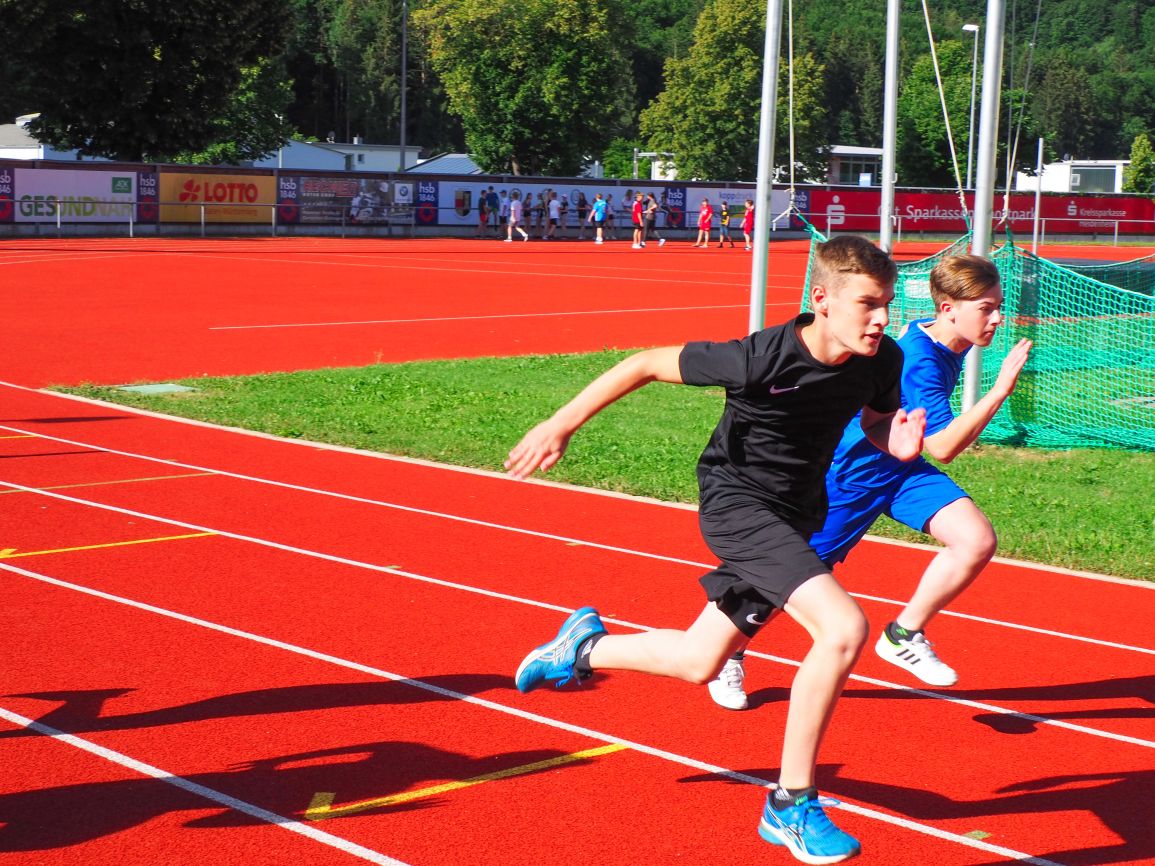 Nachdem coronabedingt die Bundesjugendspiele 2020 und 2021 ausfallen mussten, wurde die Organisation in diesem Jahr zu einer besonderen Herausforderung. Immerhin sollten an diesem 13. Juli, einem Mittwochvormittag, insgesamt elf Klassen aus den Klassenstufen 5 bis 7 in einem straffen Zeitplan die vier Disziplinen Schlagballweitwurf, 800-m- bzw. 1000-m-Lauf, Weitsprung und den Sprint über Strecken 50 oder 75 Meter absolvieren. Zum Abschluss gab es noch Staffelwettkämpfe, bei denen sich die einzelnen Klassenstufen lautstark miteinander messen konnten.