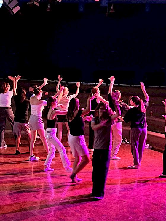 Just in dem Zeitraum als die Bibliothek aufgrund der Renovierungsarbeiten komplett frei und der Teppichboden noch nicht herausgerissen war, wurde also an diesem Wochenende geprobt, getanzt und in der Schule übernachtet.
