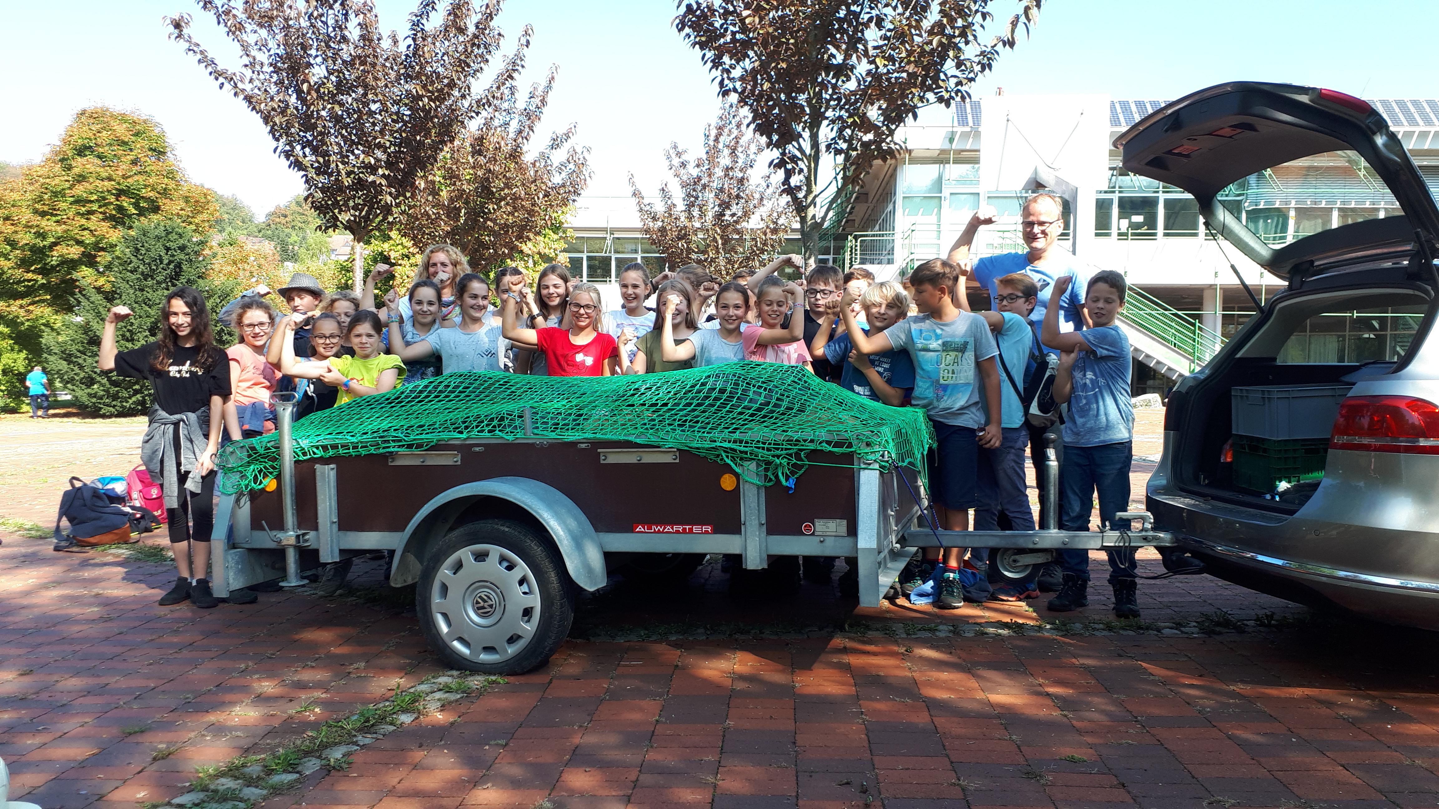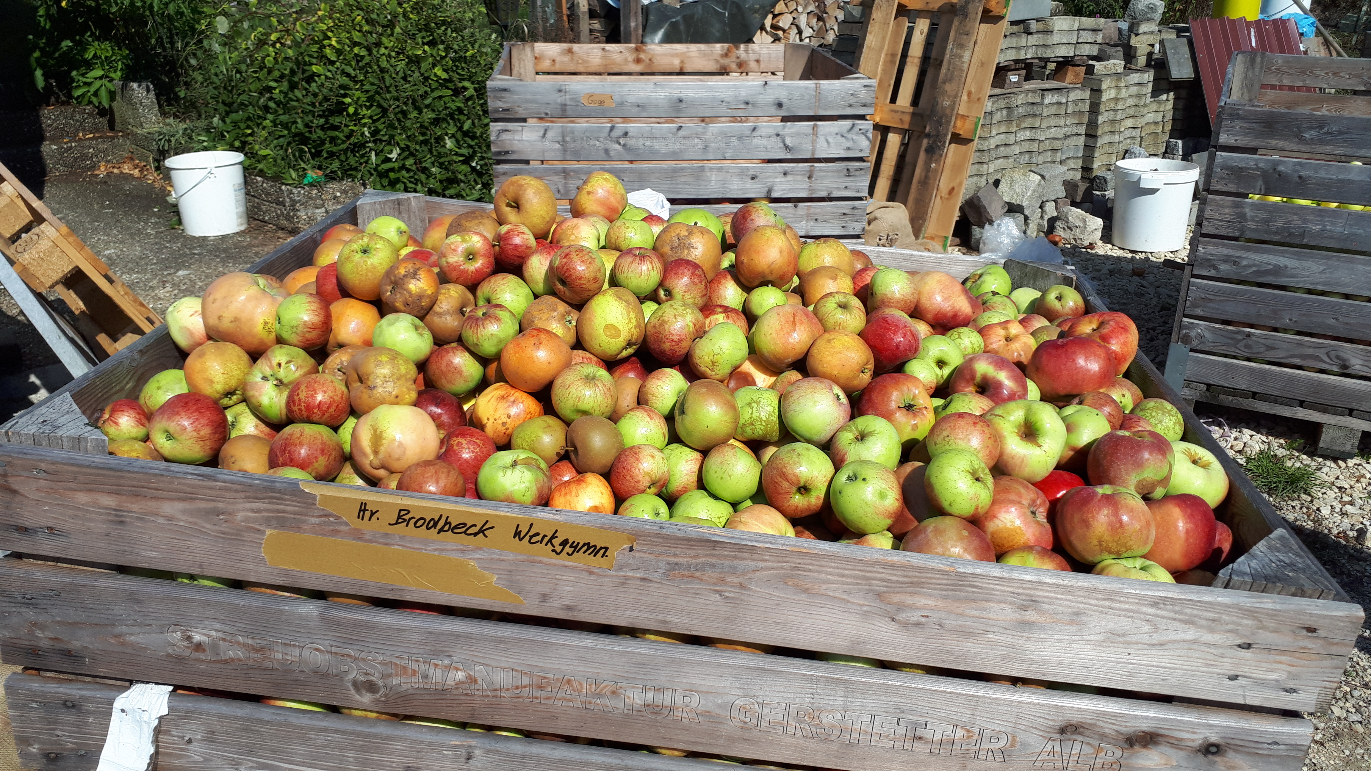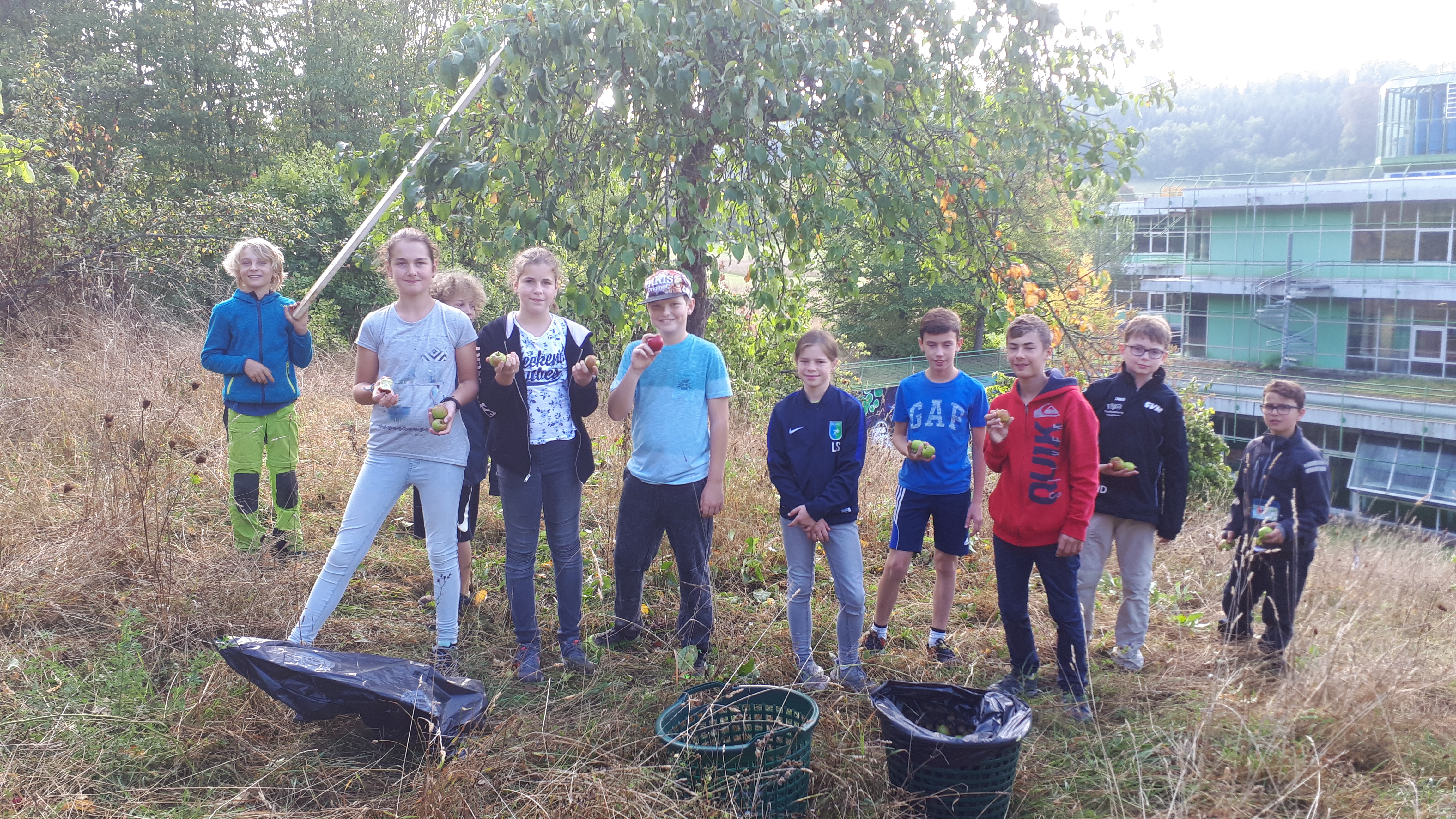Mit Feuereifer hat die Klasse 6b den Wandertag am 19.09. dazu genutzt, alle Apfelbäume auf unserem Schulgelände abzuernten und die Früchte transportbereit aufzuladen. Die Klassenleiter Herr Brodbeck und Frau Schubert haben die Organisation und den Transport zum Keltern übernommen. In diesem Jahr haben wir mit Thomas Junginger aus Gerstetten einen neuen, lokalen Partner für die Saftproduktion gewonnen. Finanziert wird das Keltern von unserem Förderverein Werkgymnasium e.V. Aus der Apfelernte von rund einer Tonne Obst, die in Kooperation mit unserem Projektpartner, dem Schulverbund im Heckental, stattfand wurden rund 750 Liter Apfelsaft. Der Saft ist völlig "bio" und somit ein wahrer Partner-Cuvée. Unsere gemeinsame Projektgruppe beteiligt sich übrigens ganz aktuell an der Agenda 2030 der Stadt Heidenheim!