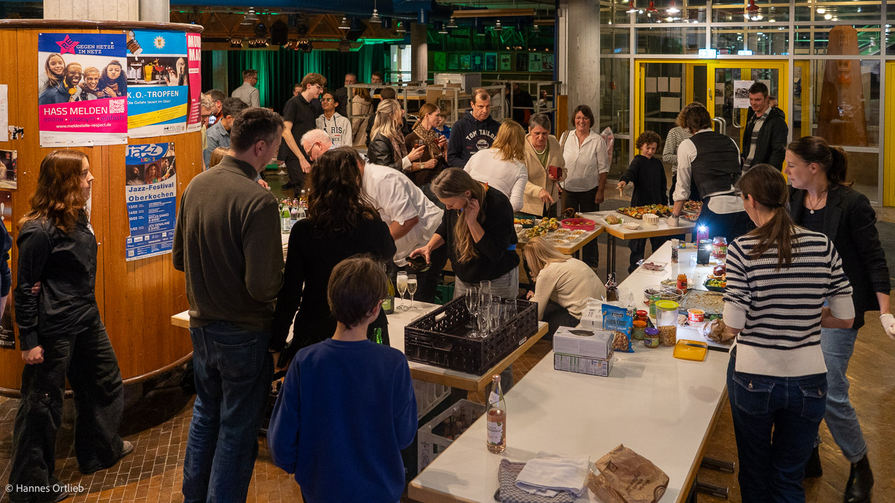 In der Konzertpause nutzten viele Gäste die Gelegenheit, alte Weggefährtinnen und Weggefährten wiederzutreffen. Für das leibliche Wohl sorgten engagierte Eltern aus der Klasse 5c, die das Publikum mit Snacks und Getränken versorgten.