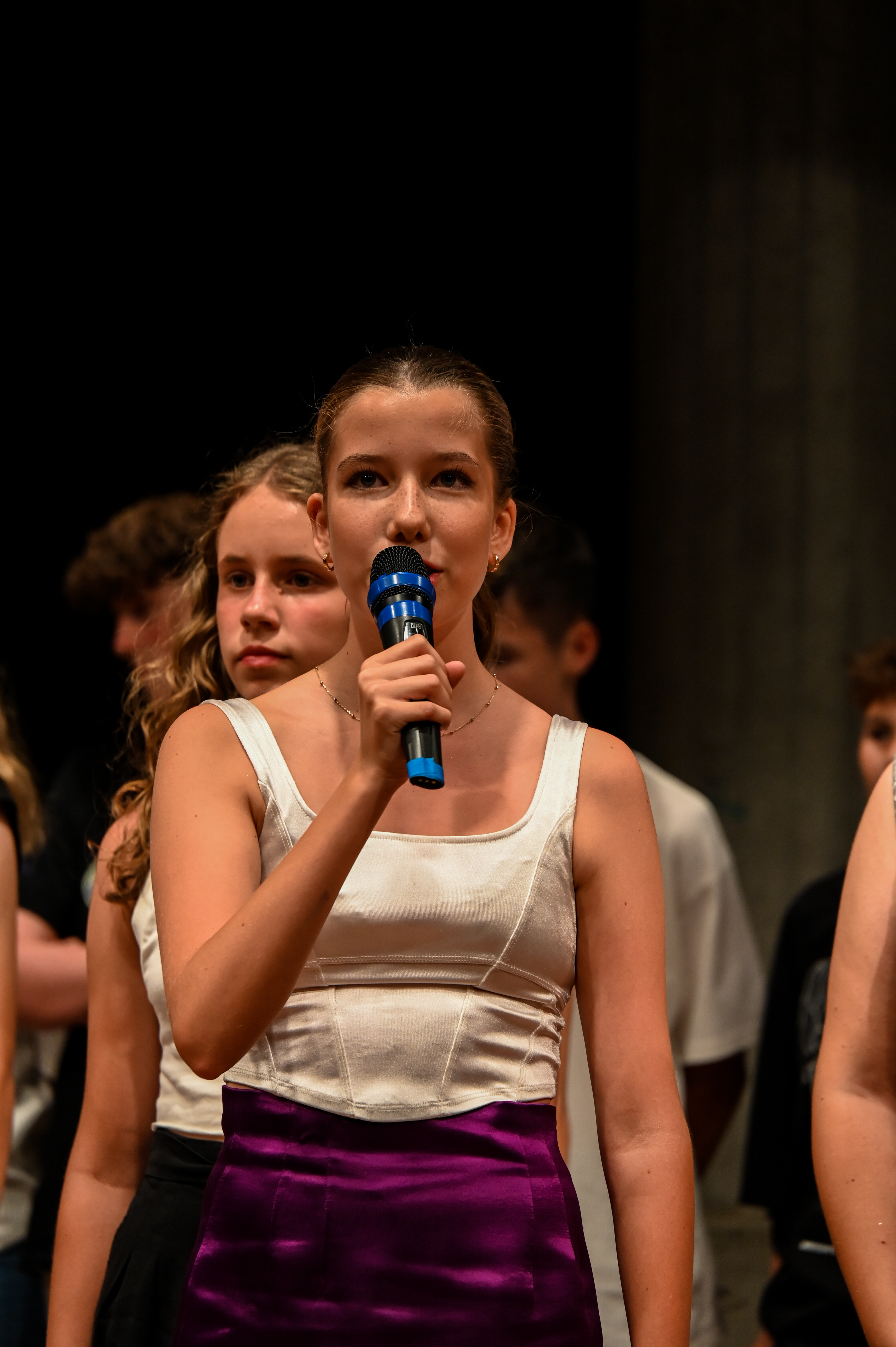 Am 14.7. war es endlich wieder so weit: die 7. Klassen durften ihre Ergebnispräsentation des Pool-Musical-Projektes, das dieses Jahr von den Musiklehrerinnen Frau Greulich, Frau Strasser und Frau Weber geleitet wurde, einem größeren Publikum vorstellen. Nach zwölf Wochen mit vielen Probenstunden, Rollenwünschen und sicher auch -verwünschungen, wenn der Text sich nicht so einfach auswendig lernen ließ, hieß es an diesem Abend: Kein Wunsch ist schnuppe.